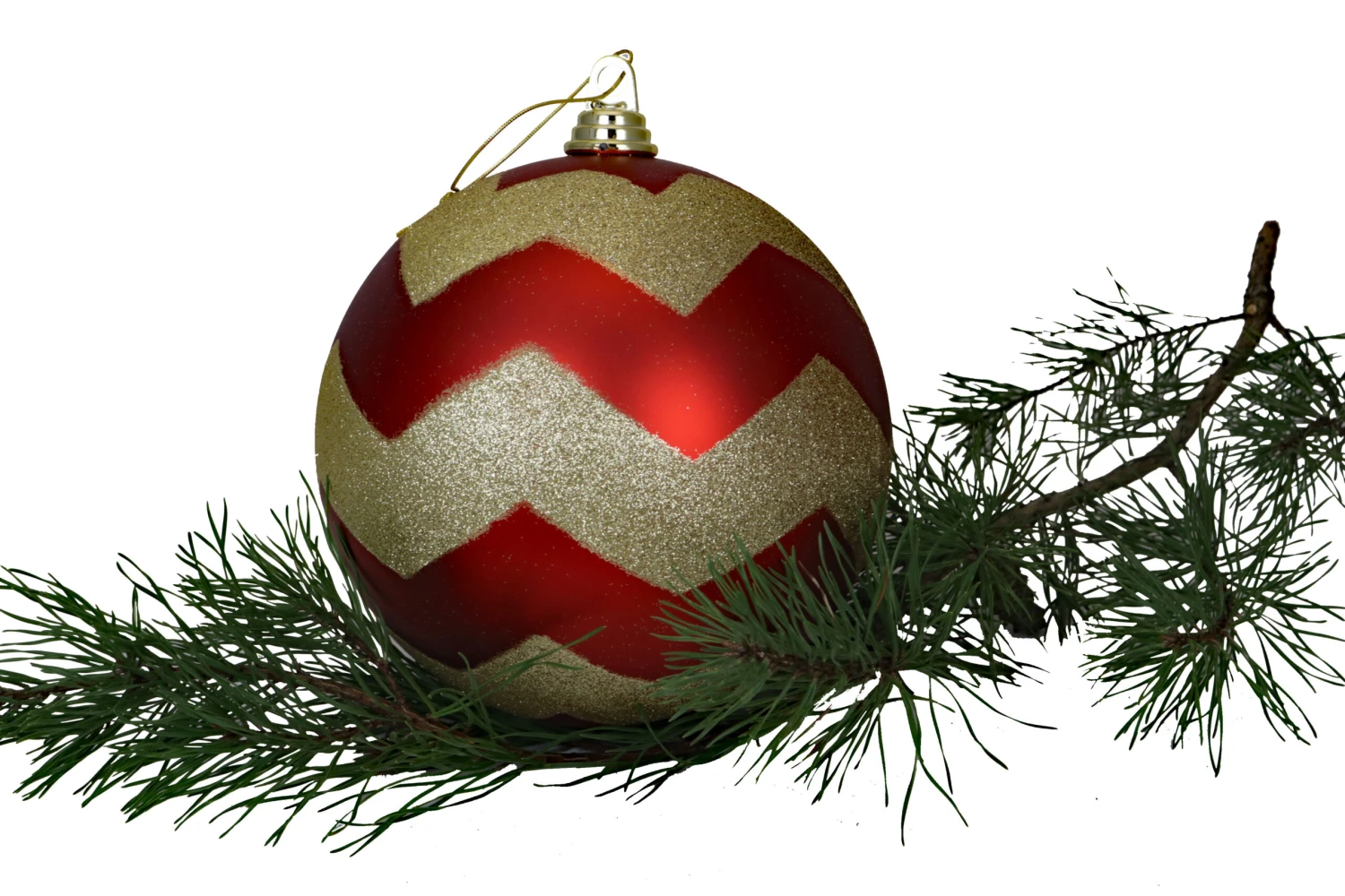 Larger shatterproof ornament with a Matte Red and Gold Chevron design. Comes with hanging cord.