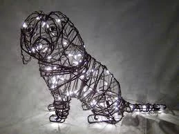 Cavalier King Charles Spaniel Sitting Topiary offered both filled with pre-dyed sphagnum moss or frame only as well as lit. Heavy-gauge wire frame powder coated black.