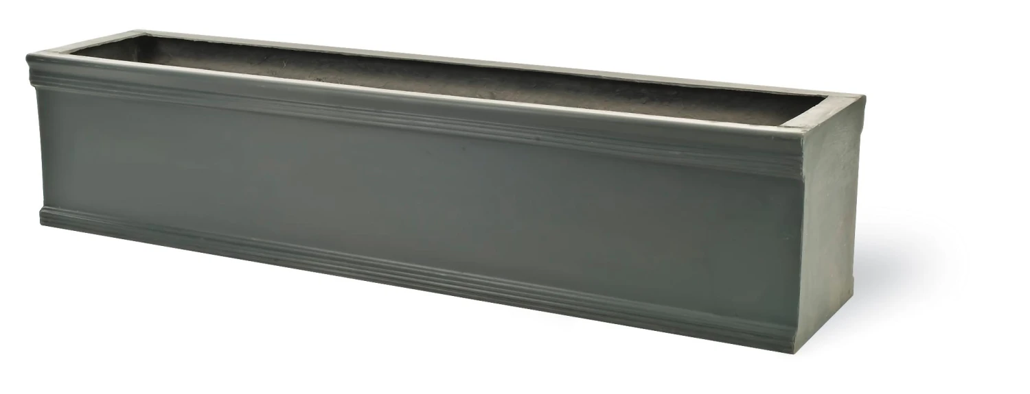 The Chelsea window box is crafted from durable and lightweight fiberglass, measures 38″ long x 9″ wide x 9″ high. Offered in a faux lead finish.