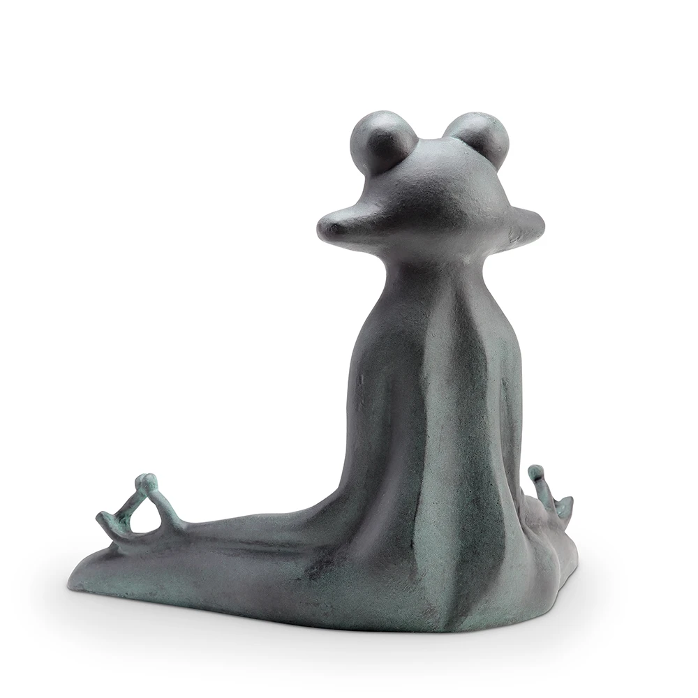 Contented Yoga Frog crafted from aluminum and given a verdigris finish.