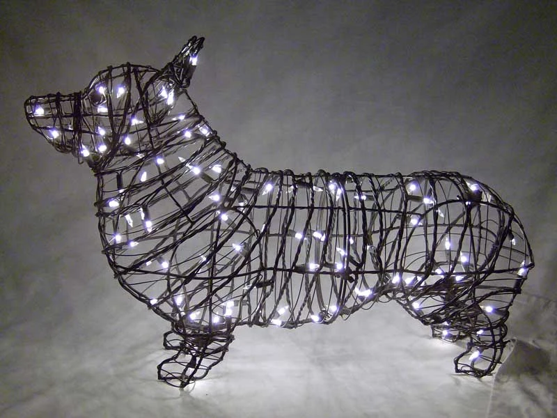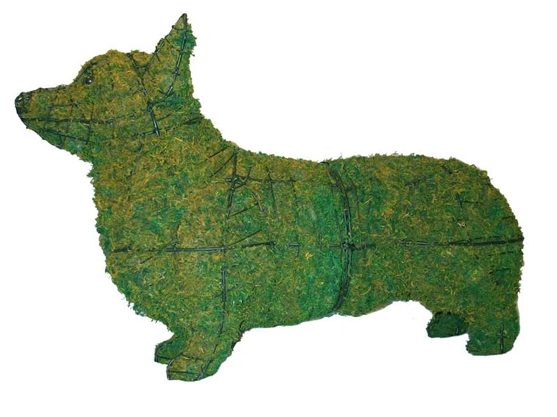 Corgi Topiary offered filled with pre-dyed sphagnum moss, frame only or lit. Heavy-gauge wire frame powder coated black.