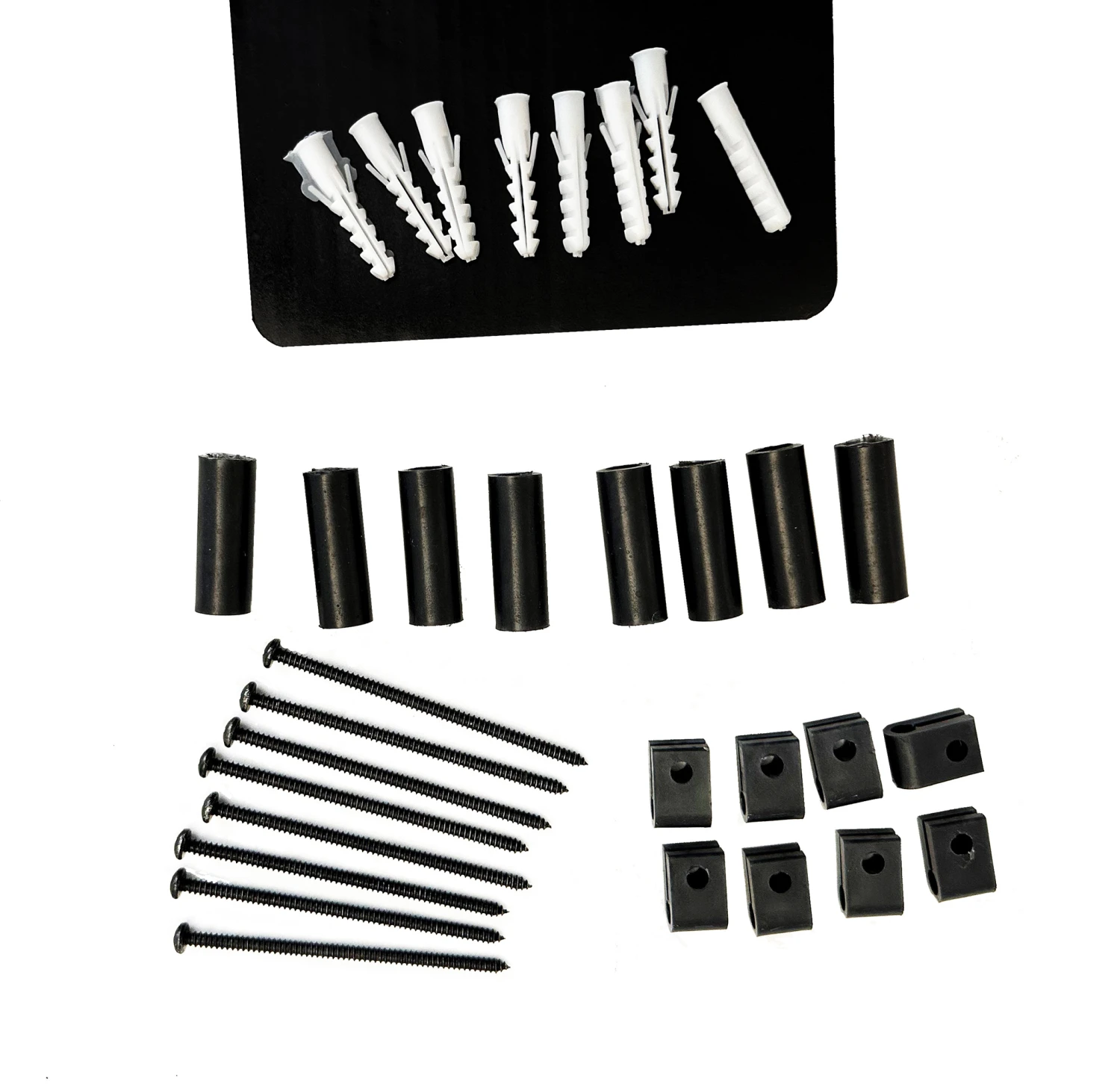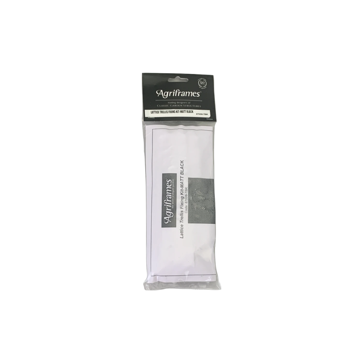 The Fixing Kit for lattice wall trellises consists of 6 cleats that attach to your wire lattice, 6 spacers to keep lattice away from wall, along with the screw and molly to attach to your wall. Screws are 4″ long.