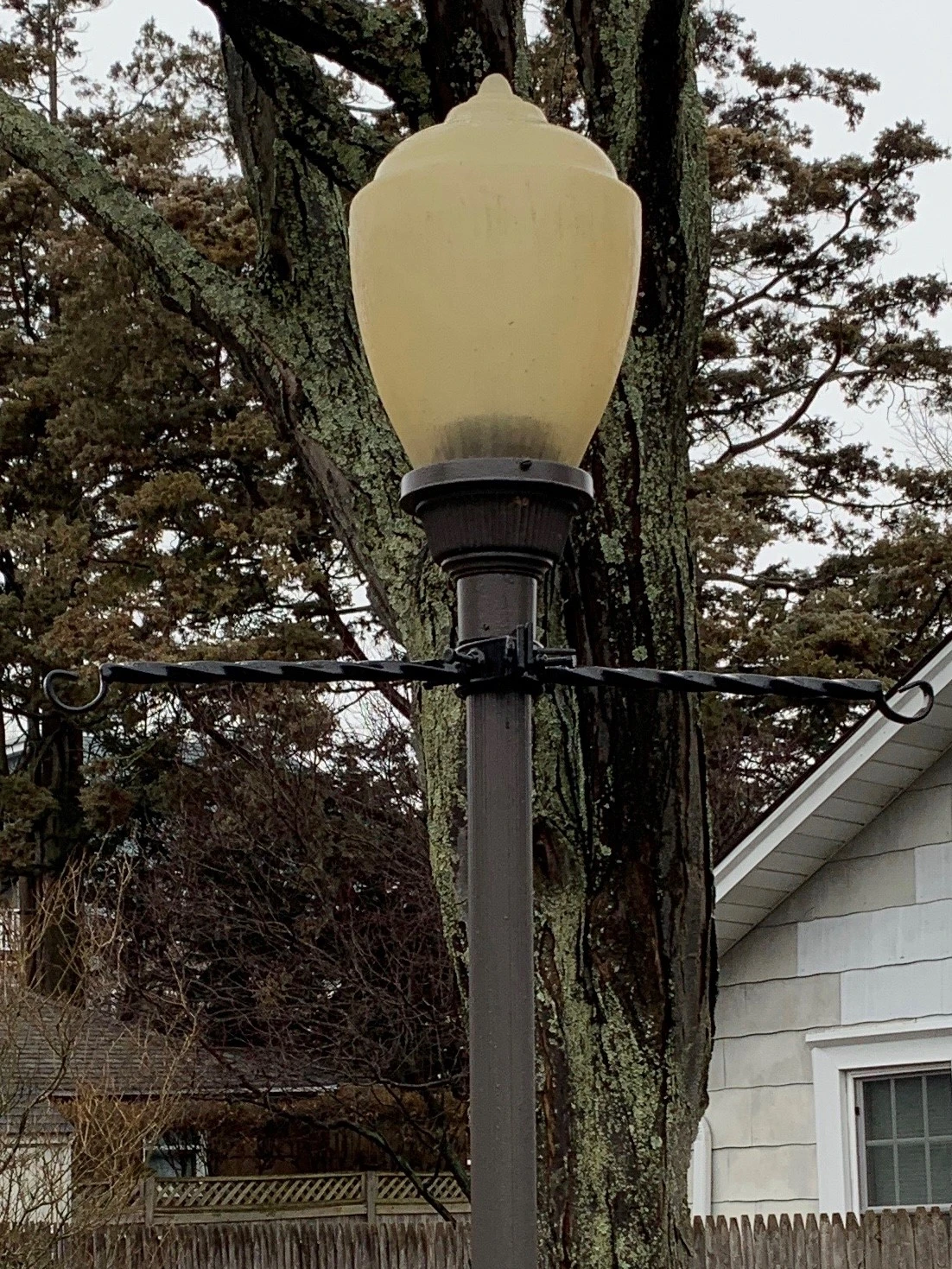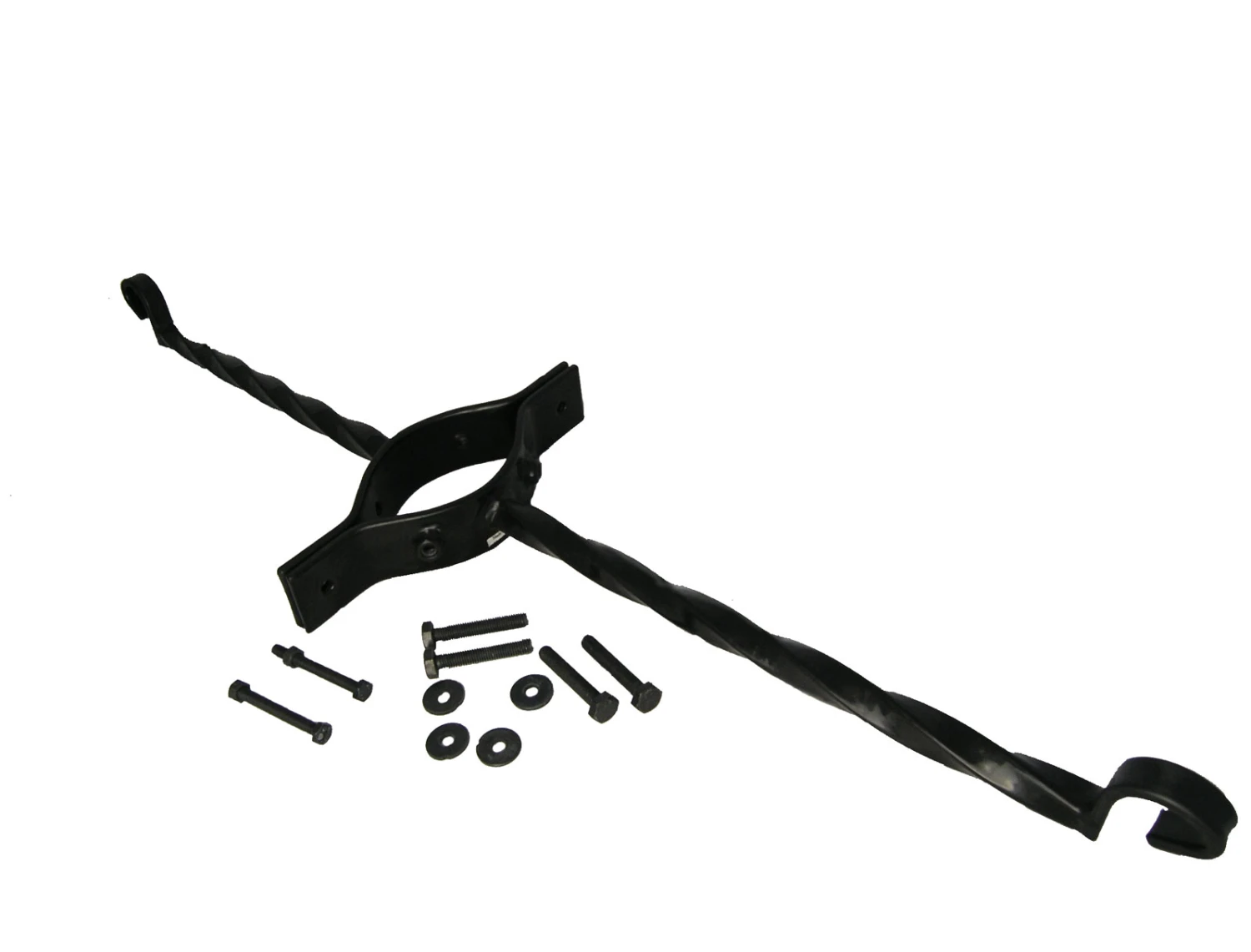 The Gas Lamp Style Pole Bracket is a heavy-duty steel bracket designed to fit lampposts 3″ to 4″ in diameter. The twisted steel arms follow the traditional Victorian design. Coated in black plastic.