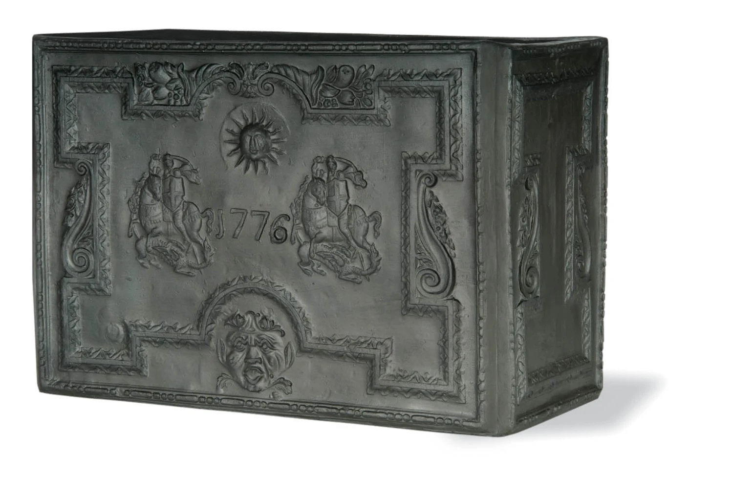 The standard finish choice for the George and Dragon tank is Bronzage. Faux Lead finish available as a special order.