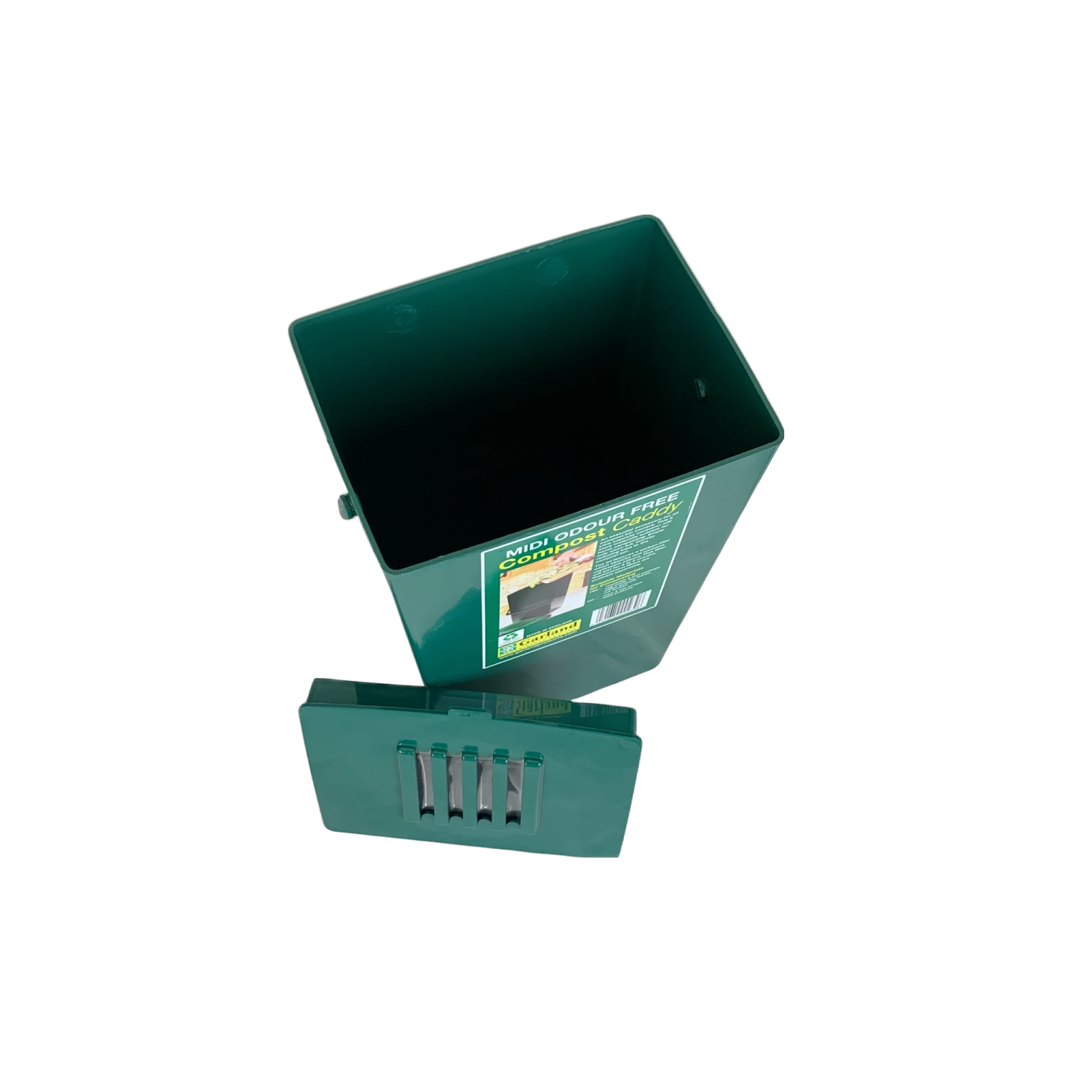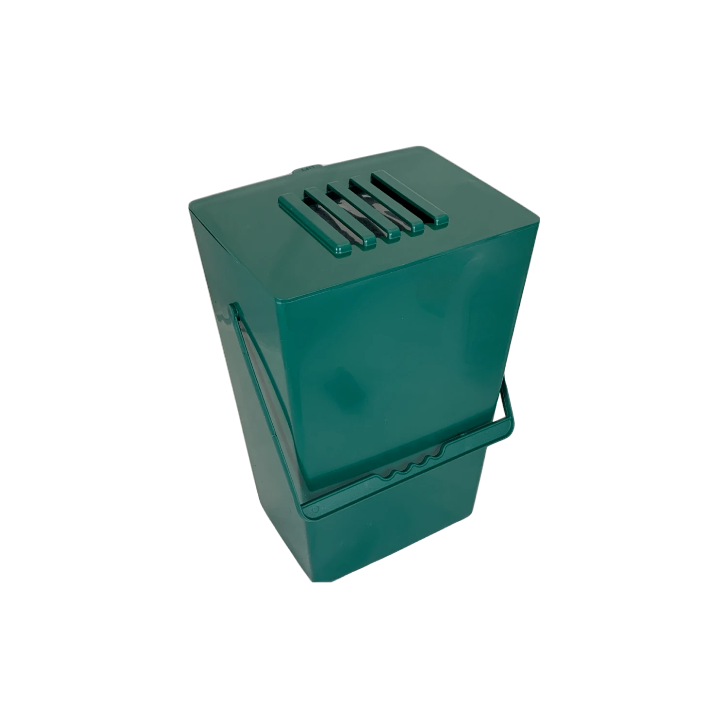 The newly designed kitchen compost bucket has an activated charcoal filter in its lid to neutralize odors. Each filter lasts 3 to 4 months.