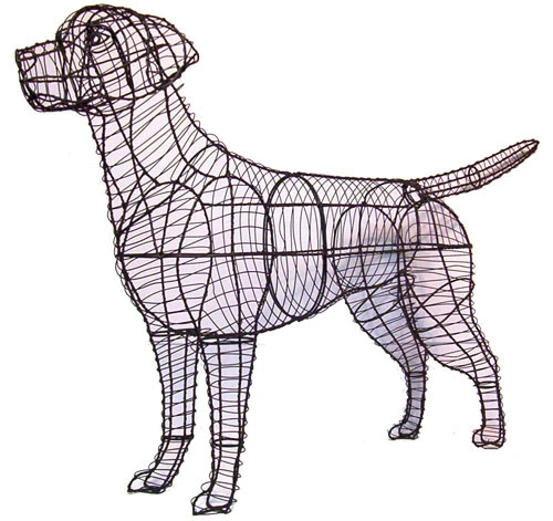 The Labrador Retriever Topiary is offered both filled with pre-dyed sphagnum moss or frame only. Heavy-gauge wire frame powder coated black.