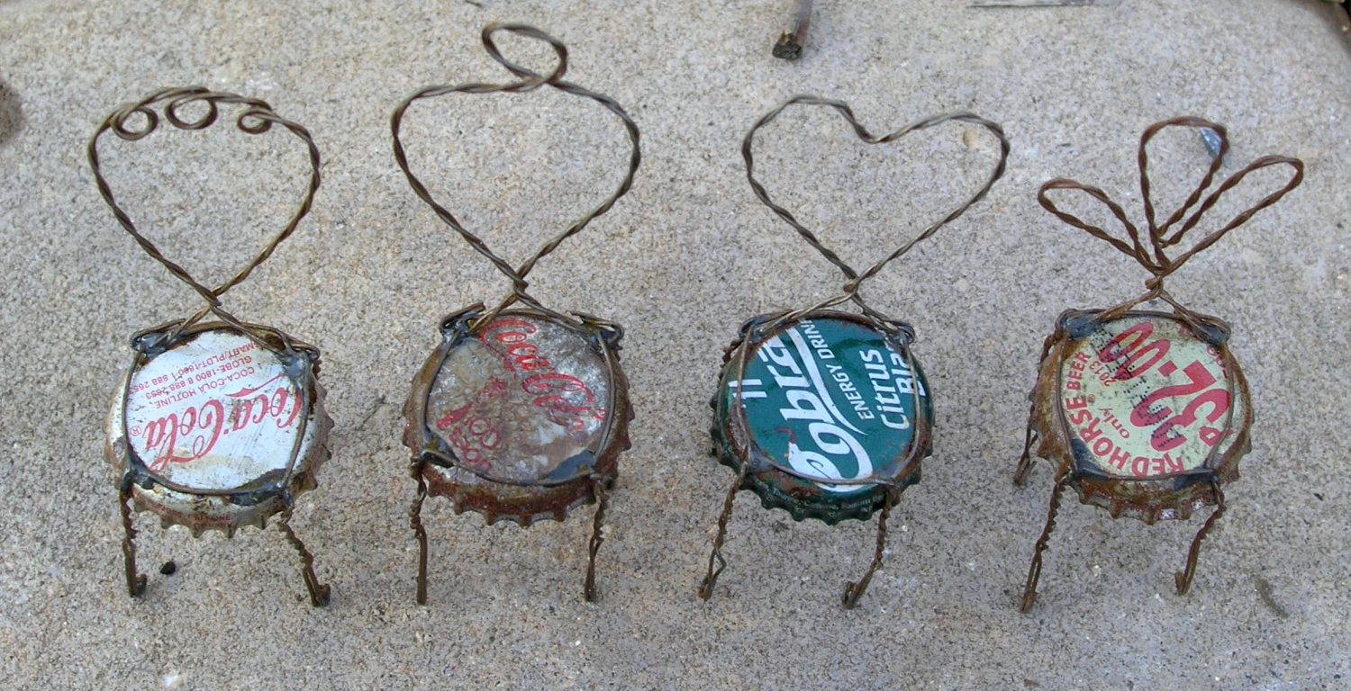 Set of 4 Bottlecap Chairs – perfect for a whimsical fairy garden or ice cream parlor scene. Each has its own unique style back rest.