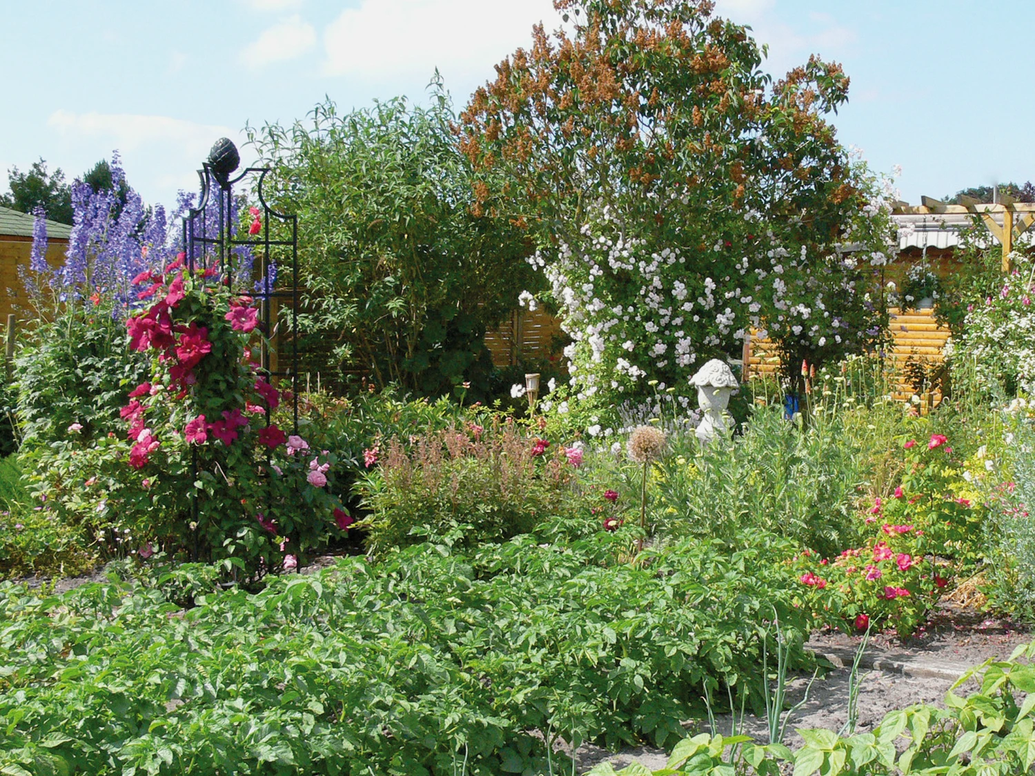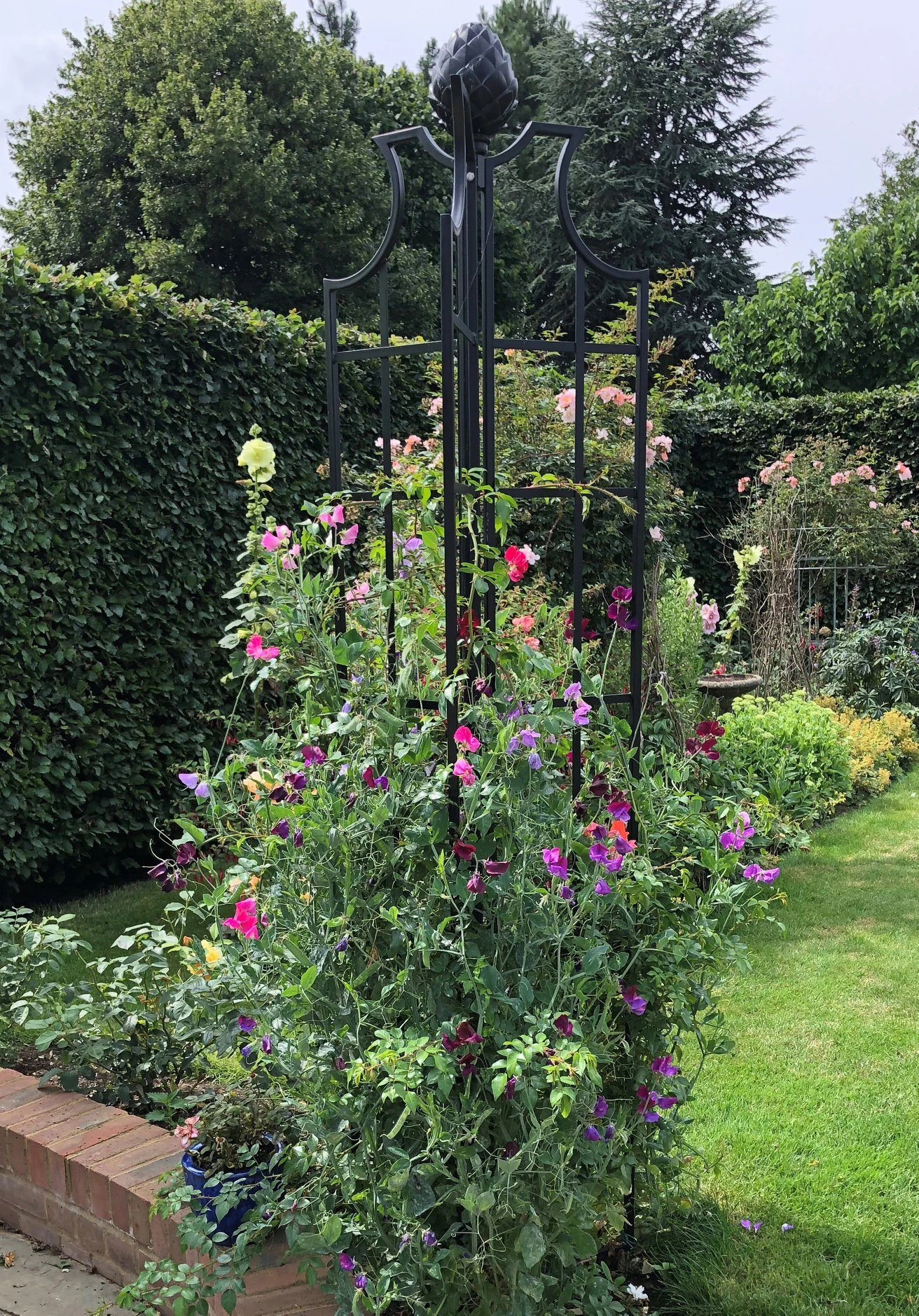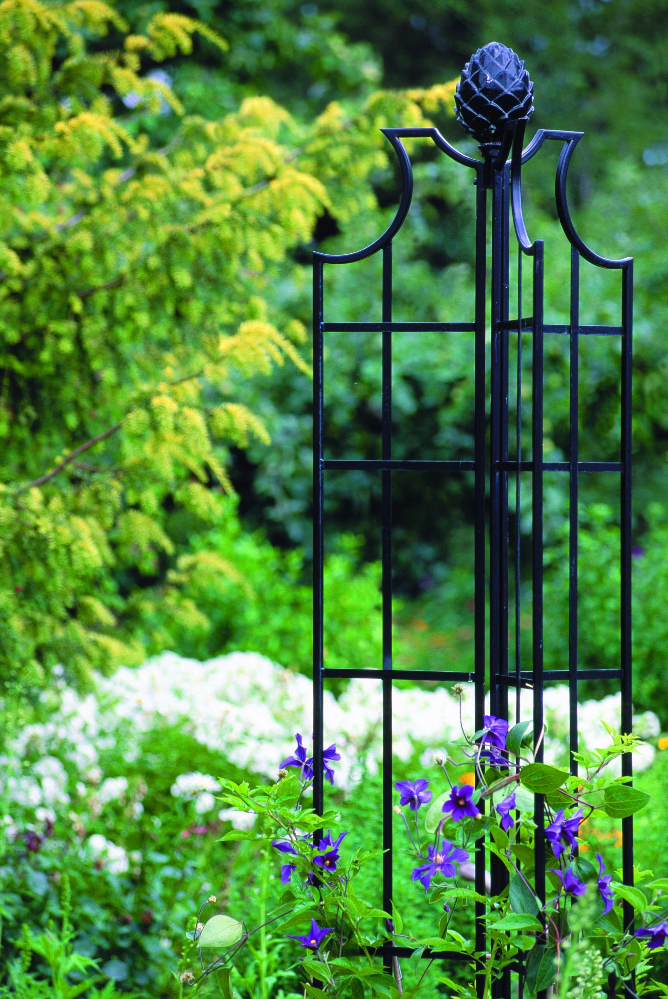 The Obelisk II Rose Pillar design harmonizes particularly well with clematis and old roses.