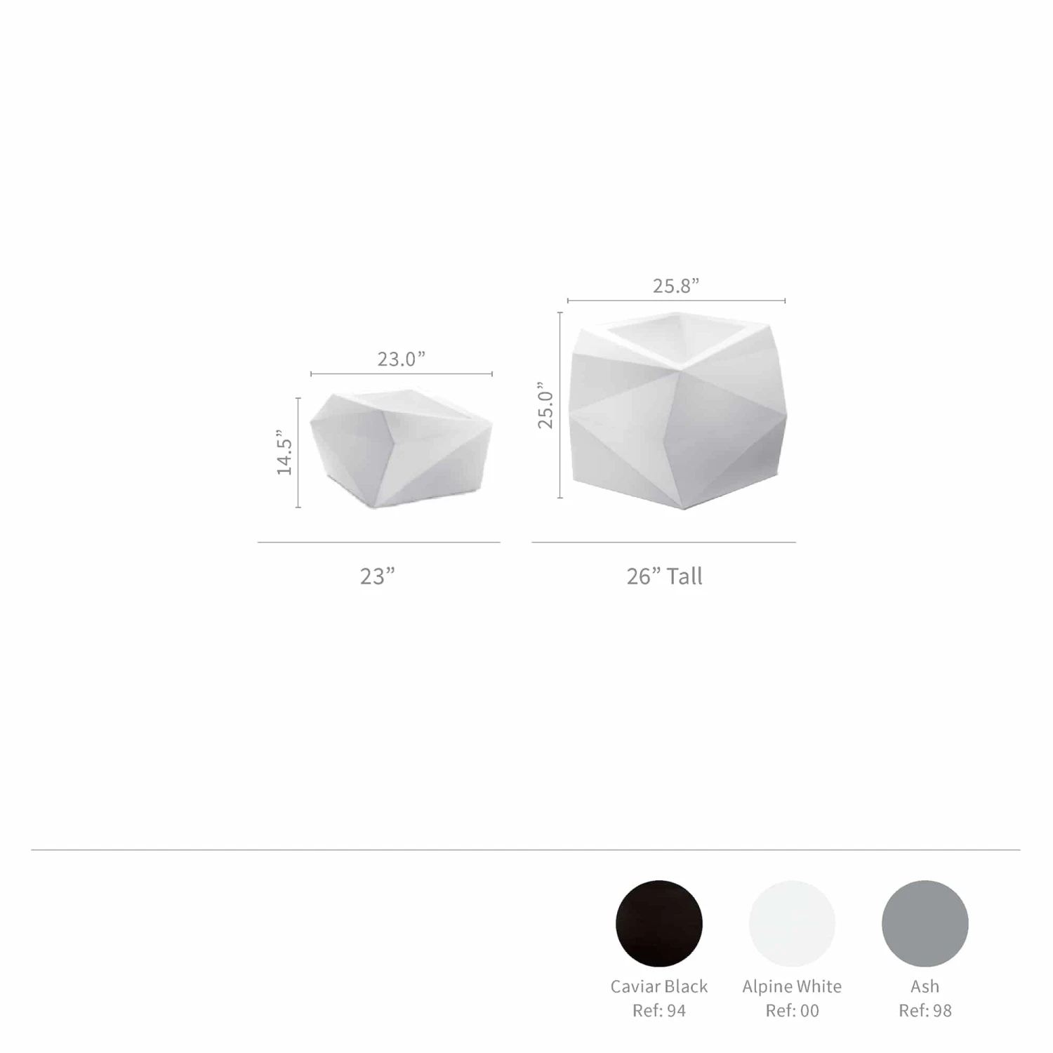 The Origami planters from Crescent are truly unique and quite contemporary. Offered in 23″ and 26″ sizes with a variety of color choices.
