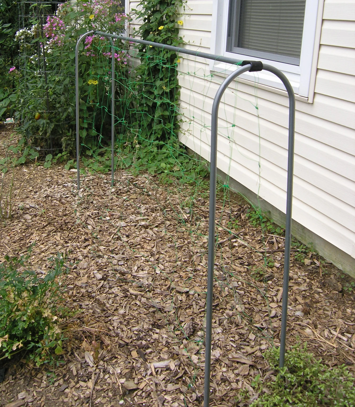 Support peas and beans. Complete with mesh netting and ground fixing hooks. Made from 5/8″ galvanized steel tube and fitted with a rigid top bar.