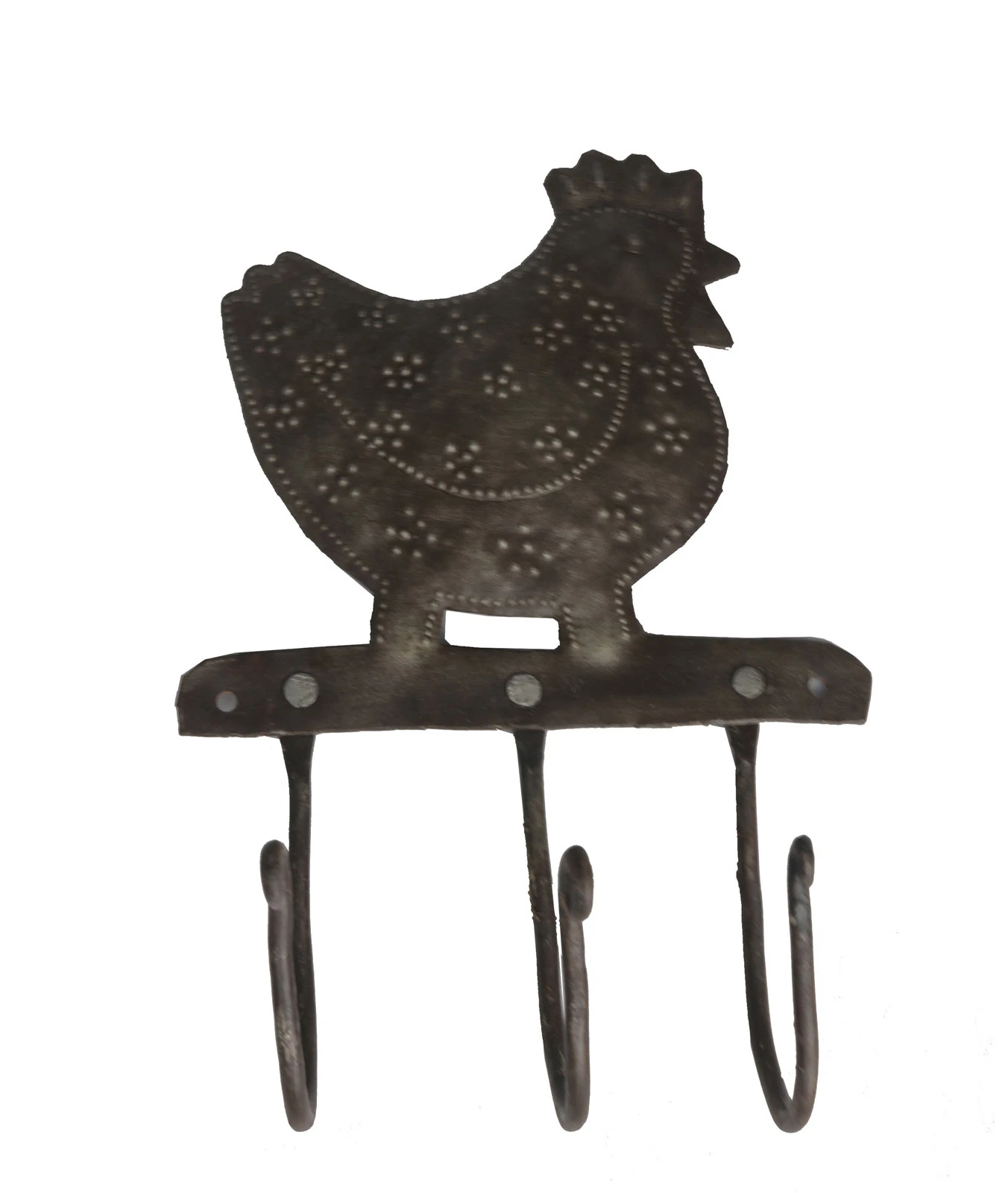 Our decorative and functional Primitive Hen Hook has 3 large hooks and measures 6.5″ wide. Hanging holes on back.