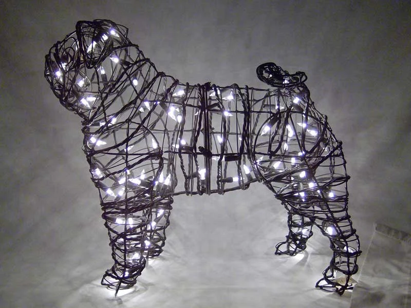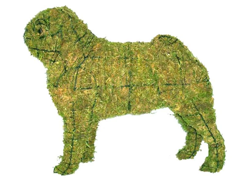 Pug Topiary offered both filled with pre-dyed sphagnum moss or frame only. Heavy-gauge wire frame powder coated black.