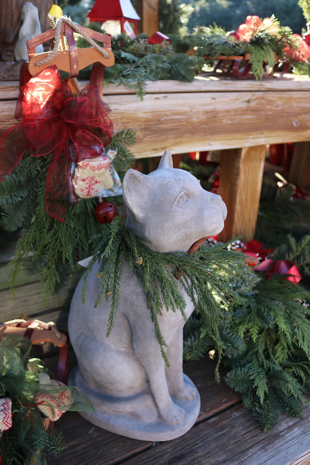 The Sitting Cat by Henri is crafted of cast stone (concrete) and offered in your choice of finish. Standing at 18″ tall, this cat will sit patiently in your garden keeping watch. Shown here in Trevia Greystone.