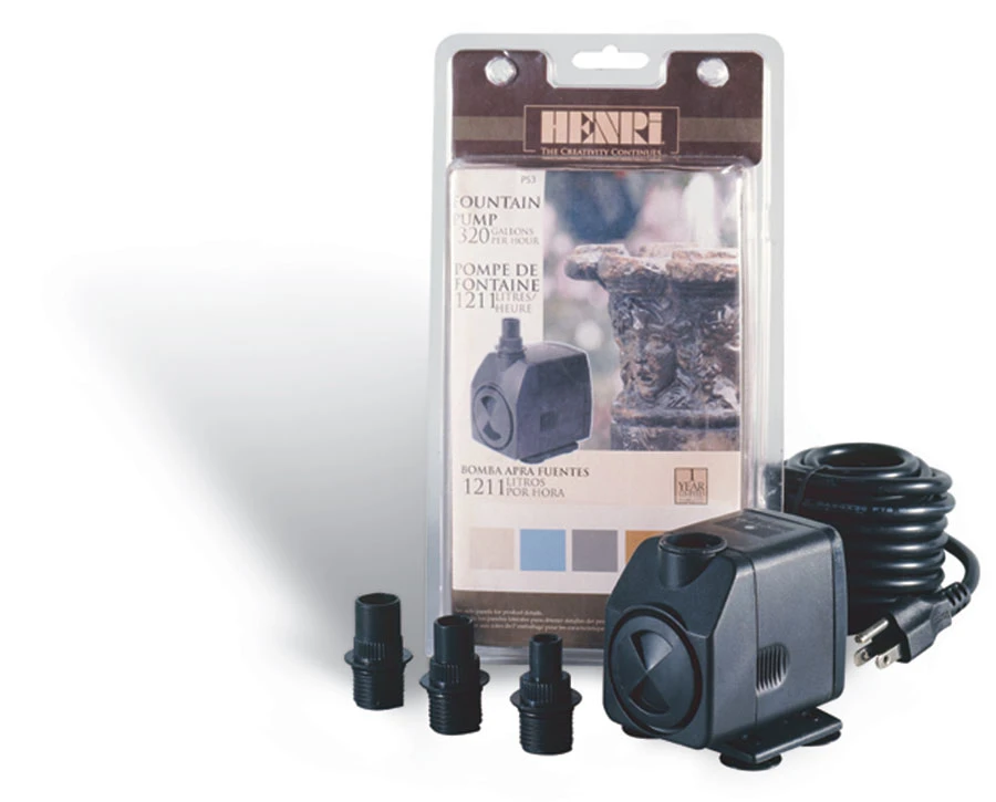 Submersible magnetic drive pumps include pump and tubing adapters. Pumps are differentiated by the number of gallons per hour (gph) of water they are able to pump.