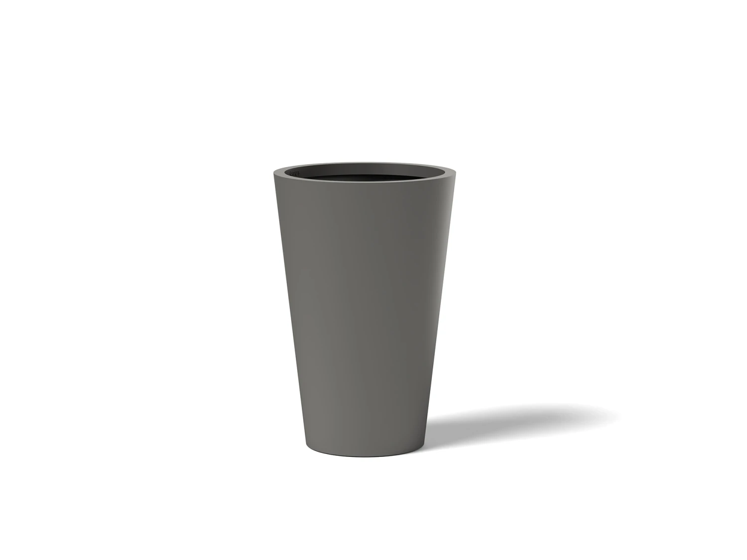 The Tall Round Taper planters measure 25in x 38in and 36in x 54in and are offered in steel, aluminum or Cor-ten steel. The aluminum is offered in 10 standard finish choices. Custom powder coat colors available upon request.