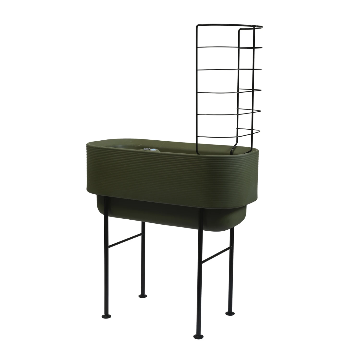 This trellis is an optional add-on for the Nest Raised Planters by Crescent allowing for vertical growing. Crafted from metal and given an electro-coating in black to resist corrosion.