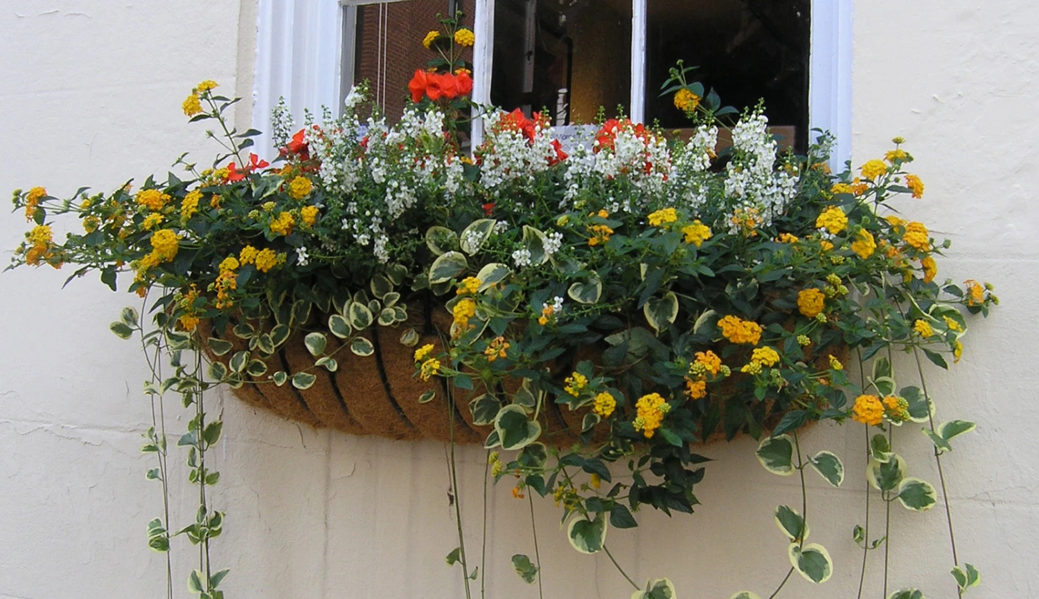 Window Hayrack planters evoke a feel of an English country home